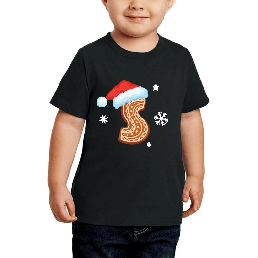 - Festive Christmas-themed T-shirt with bold initial letters, adding a playful touch to your little boy’s holiday outfit.