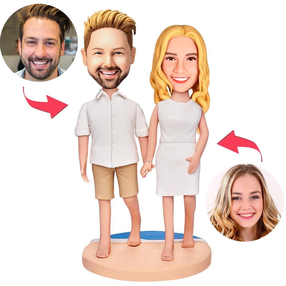 Capture your cherished moments with these personalized couple walking on the beach custom bobbleheads, featuring engraved text to make it truly unique. This handcrafted figurine is an ideal gift for anniversaries, weddings, or any special occasion.