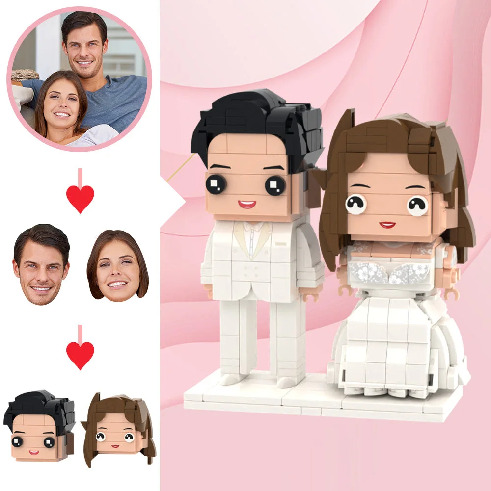 Romantic Wedding Figurines for Couple | Custom Brick Style Gift | Custom Bride Groom Outfit Figures