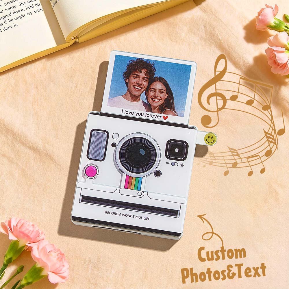Bring your memories to life with this interactive instant-style fridge magnet. It lets you upload your favourite photo and turn it into a fun, meaningful keepsake. With a simple slide of the small lever at the bottom right, the photo appears while your selected music starts playing.