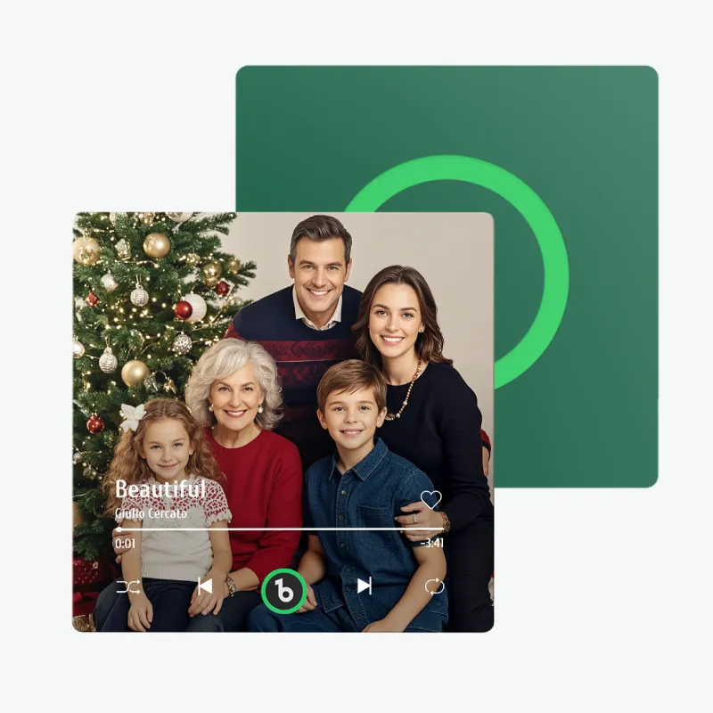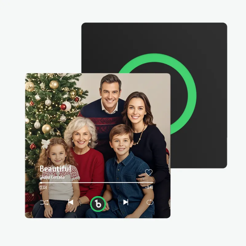 • 🎶 Features a scannable music code to play your selected song or message, paired with a custom photo
