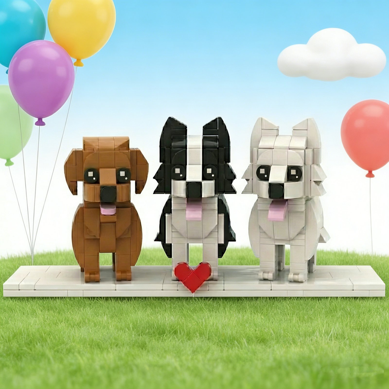 Celebrate your furry companions with a Custom Brick Figures 3 Dogs Gift for Pet Lovers Idea, a fun and heartwarming keepsake that turns your pets into adorable brick-style characters. Perfect for pet lovers.