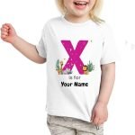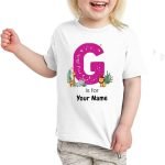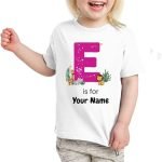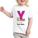 Custom Girls’ T-Shirt with Name, showcasing playful alphabet and animal designs. A unique and personalized birthday gift that’s perfect for kids and makes a memorable keepsake