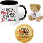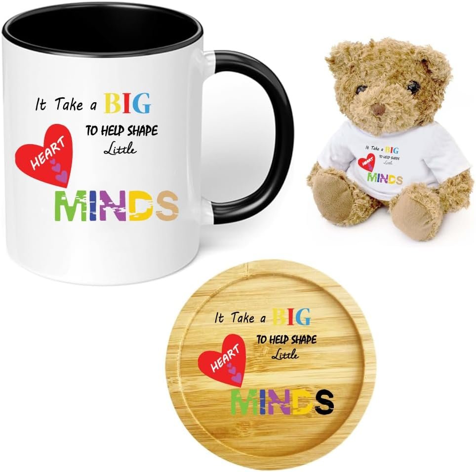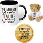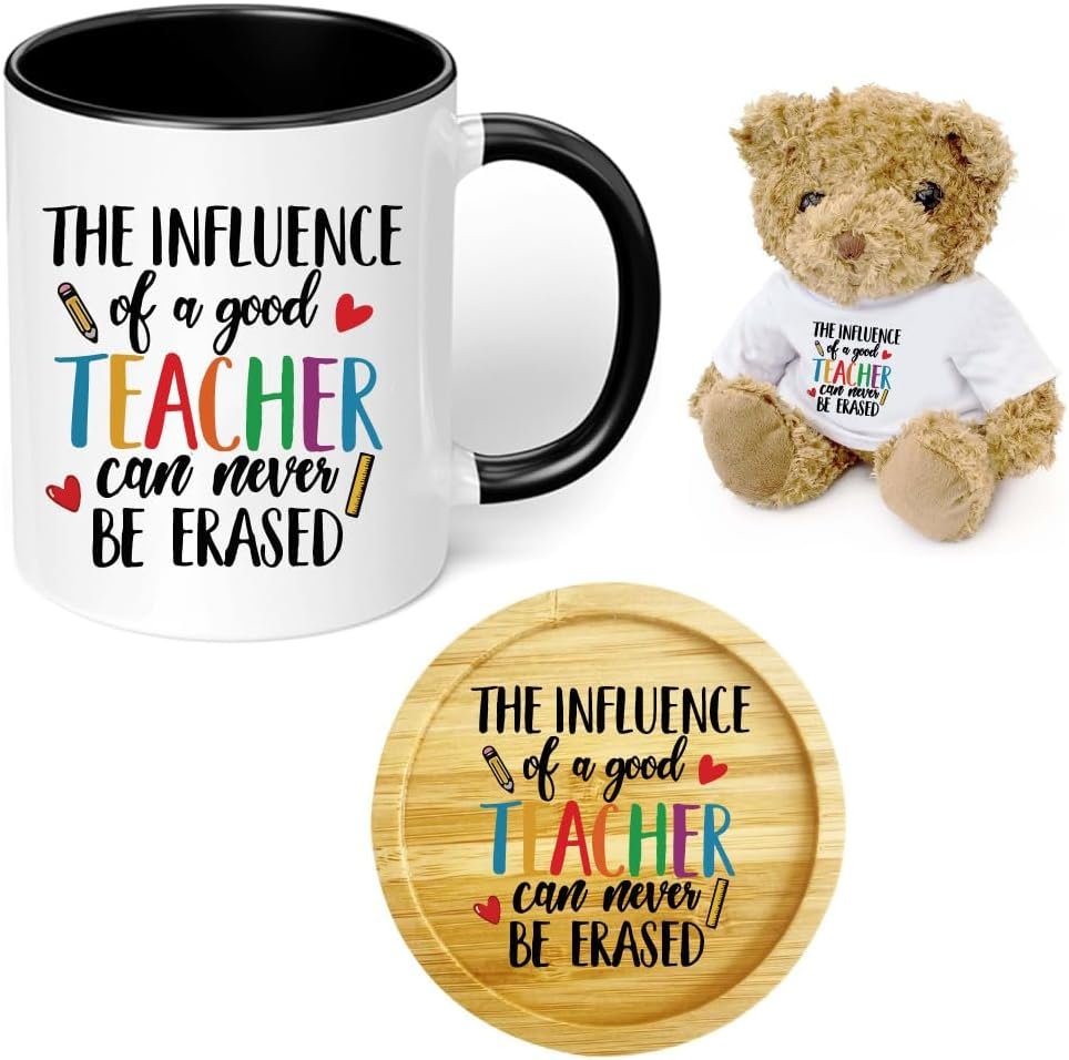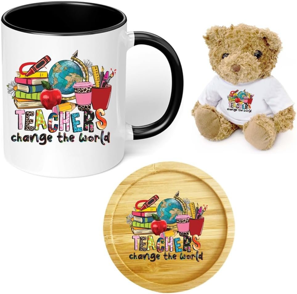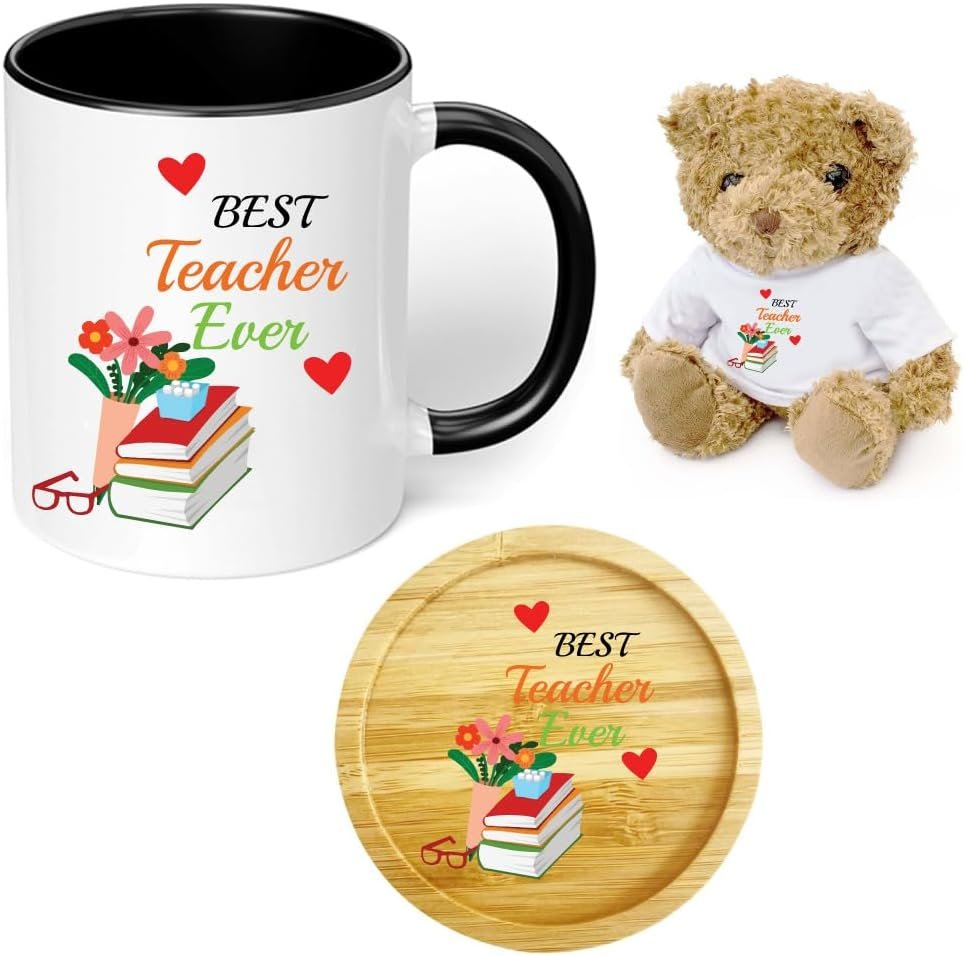 Heartfelt Teacher’s Day Gifts – Pack of 3 Thoughtful Items Including a Cuddly Teddy Bear, Charming Mug, and Round Wooden Coaster – Perfect to Show Your Appreciation for All the Amazing Teachers in Your Life