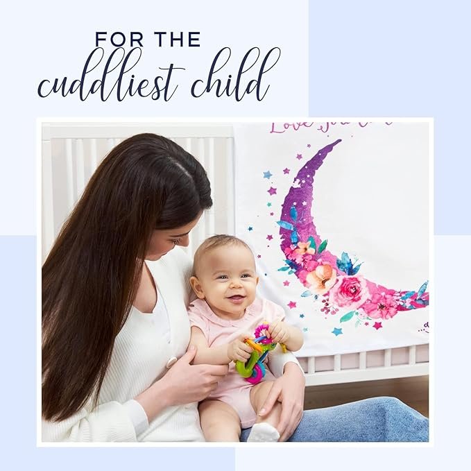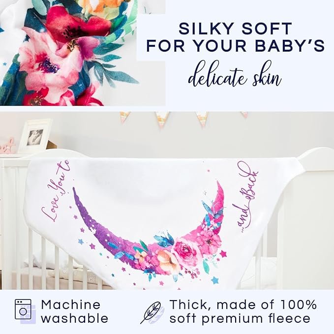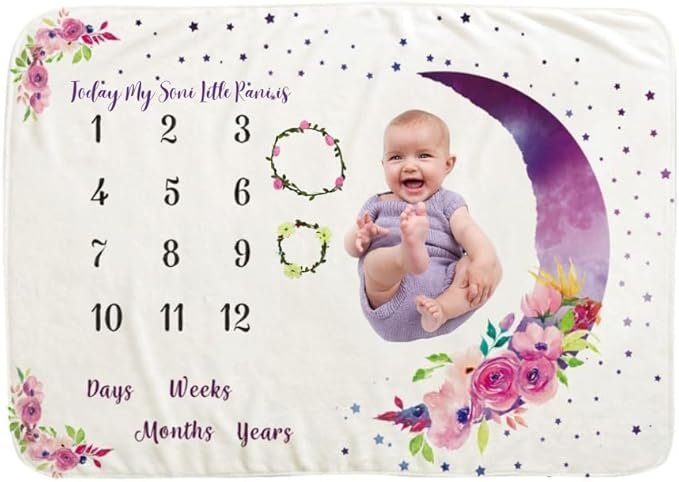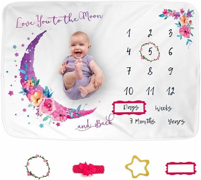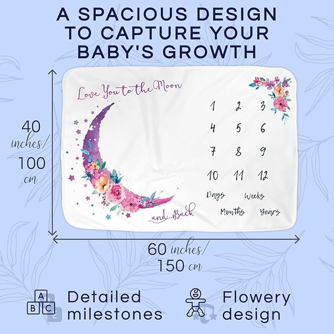 • Charming Moon and Floral Design: Featuring a delightful moon and floral theme, this blanket adds a magical and adorable touch to your baby’s milestone pictures while doubling as a stylish nursery accessory.