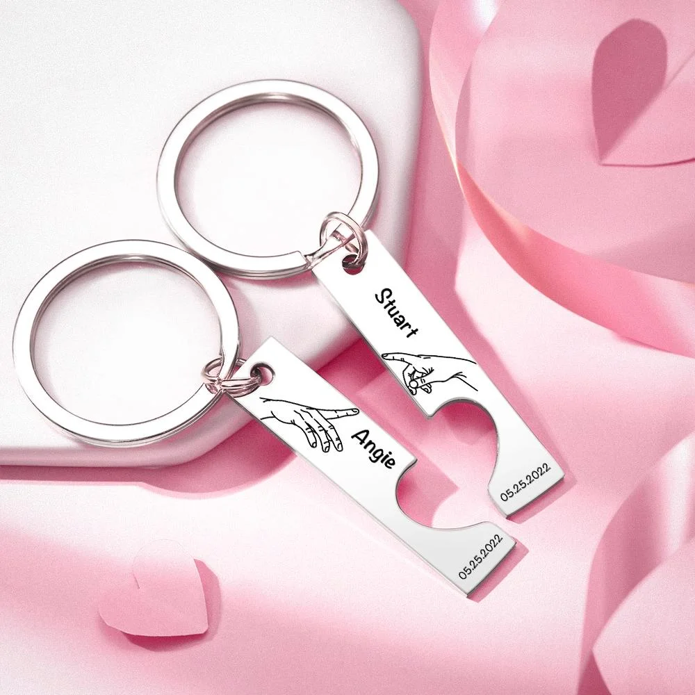 Wedding Gifts for Couple – Engraved Stainless Steel Keyring – Personalized Bar Keychain for Weddings and Anniversaries