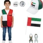 UAE National Day Kids Boys UAE Vest | Stylish Boys Vests | Combo Includes UAE Vest UAE Cap Button Badge Hand Flag UAE Ribbon