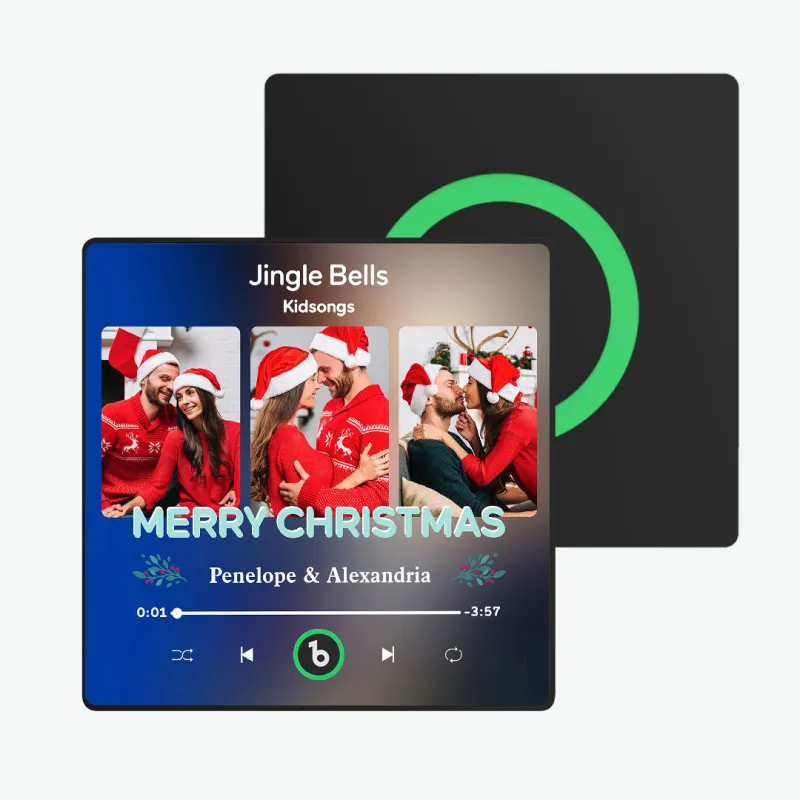 Add a personal touch to your kitchen with the FridgeBeats Framed Custom Refrigerator Magnet – featuring 3 custom photos and a personalized music track or message. A thoughtful and interactive gift that combines your favorite images with the music that means the most to you.