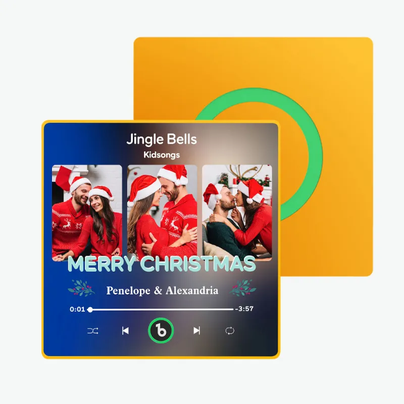 • 🎶 Plays your chosen song or message with a scannable music code, accompanied by 3 personalized photos