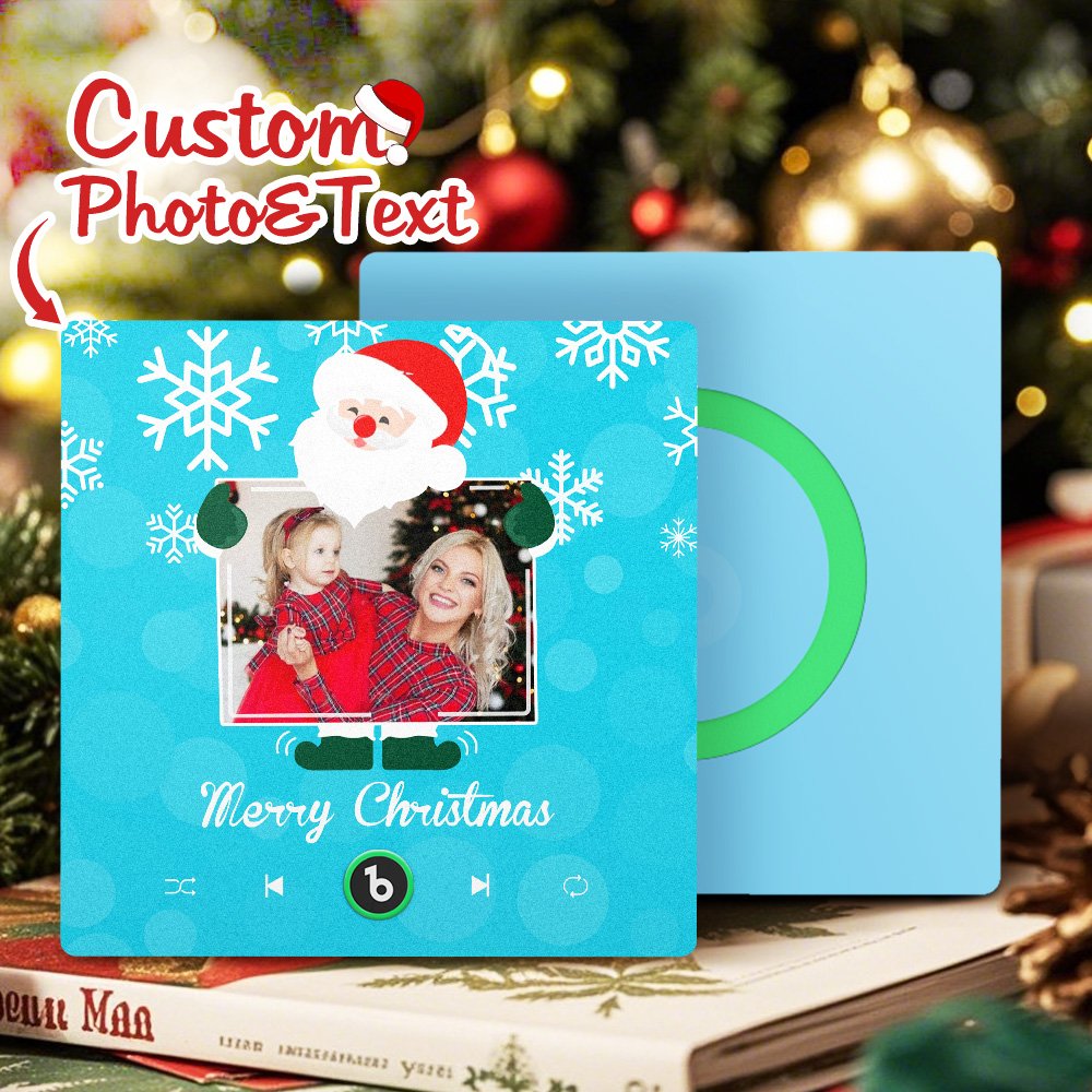 Celebrate the holiday season with the FridgeBeats Frameless Custom Refrigerator Magnet – featuring a festive Santa & Snowflakes design, personalized with your photo and a custom song or message. A perfect way to add holiday cheer to your kitchen or any metal surface.