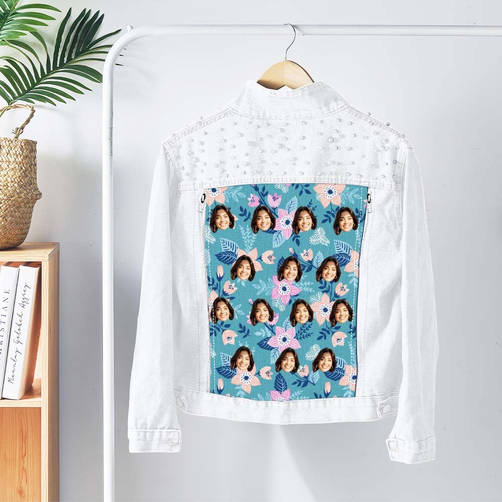 Personalised Funny Pearl Jean Jacket with Custom Face – Denim Gift for Her